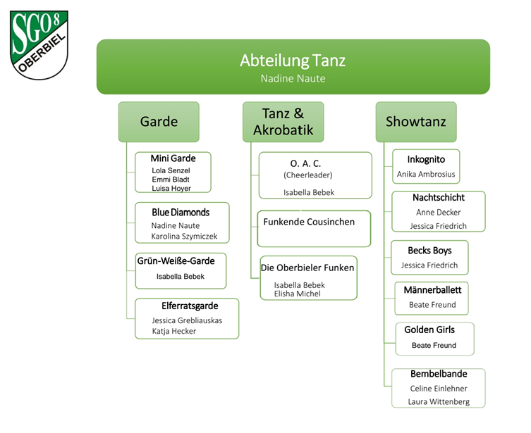 Hier finden Sie unsere Garde und Tanzgruppen. Vor allem zur Faschingszeit sind unsere Gruppen sehr aktiv, und begeistern nicht nur auf der Oberbieler Bühne. Die Teams werden von sehr angegierten Trainerinnen betreut. Stöbern sie durch die Gruppen, und treten Sie bei Bedarf mit den Trainerinnen in Kontakt. Hoffe wir sehen uns bei einen der vielen Auftritten.