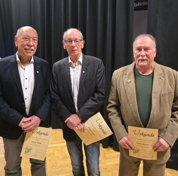 Ein Höhepunkt der Veranstaltung war die Ehrung langjähriger Mitglieder. Für 25 Jahre wurden Marvin Brück, Marlis Büttner, Anita Dörr, Celine Einlehner und Maria Lambeck geehrt, für 50 Jahre Ulrike Ambrosius, Andreas Best und Beate Freund und für 60 Jahre Dieter Becker, Erich Hagner und Gustav Kling. Besonders gefreut hat uns, dass wir auch eine Ehrung für 70 Jahre Mitgliedschaft (Harald Wilhelm) vornehmen konnten. Einige Ehrengäste konnten an diesem Abend leider nicht teilnehmen. Ihre Ehrungen werden zu einem späteren Zeitpunkt nachgeholt. Auch in diesem Jahr war die Sonderehrung ein besonderes Highlight.