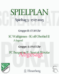 Das Spiel der jungen Wilden aus Waldgirmes gegen die geballte Erfahrung aus Niederbiel hatte interessante Vorzeichen. Waldgirmes ging sehr ballsicher ins Spiel und zwang Niederbiel direkt in die tiefe Verteidigung rund um den Strafraum. Eyüp Dayan (9., 25. und 26.) stellte schnell auf eine komfortable 0:3-Führung. Niederbiel musste aus seiner defensiven Haltung herauskommen und suchte sein Glück in vereinzelten Vorstößen. Pascale Fierus überraschte den weit aufgerückten SC-Torhüter mit einem Fernschuss und erzielte den 1:3-Anschlusstreffer. Nur zwei Minuten später erzielte Cedric Held den Treffer zum 2:3 und somit den Halbzeitstand. Wieder war es Fierus, der nach dem Wiederanpfiff den 3:3-Ausgleich erzielte. Eyüp Dayan stellte in der 61. Minute auf 3:4, ehe Torben Grandt den erneuten Ausgleich erzielte. Niederbiel brachte diesen wichtigen Punkt schließlich über die Ziellinie. Fazit: Im Spiel zwischen jugendlicher Leichtigkeit und Erfahrung bzw. Willen gab es keinen Gewinner.
