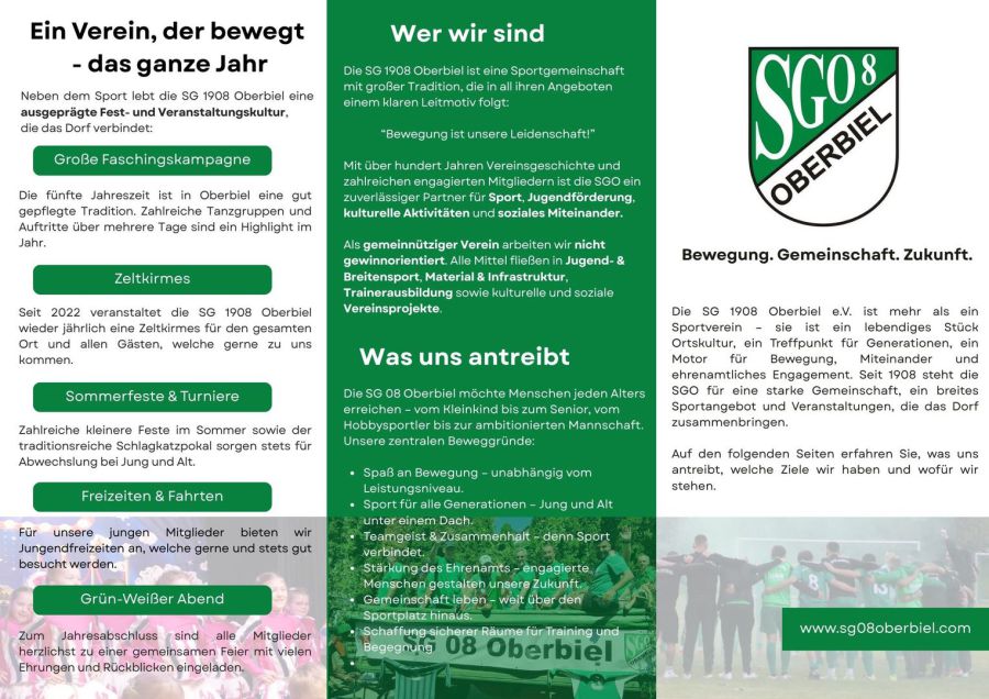 wir hoffen Dein interesse geweckt zu haben. Die SG 1908 Oberbiel ist ein traditionsreicher Verein mit vielen Facetten. Hier möchten wir Dir gerne zeigen, wie Du unseren Verein unterstützen kannst.
