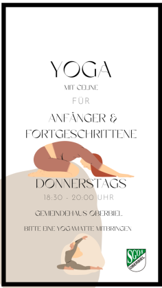 Yoga kann helfen, durch bestimmte Übungen zu entspannen, mehr Energie zu bekommen, und sich ganz auf seinen Körper zu konzentrieren. Unsere Celine lädt Sie herzlich immer Donnerstags in das Gemeindehaus Oberbiel ein (Eingang über die Schulgartenstraße). Wer hat kann gerne seine eigene Matten mitbringen. Wir wünschen viel Spaß bei den Übungen.